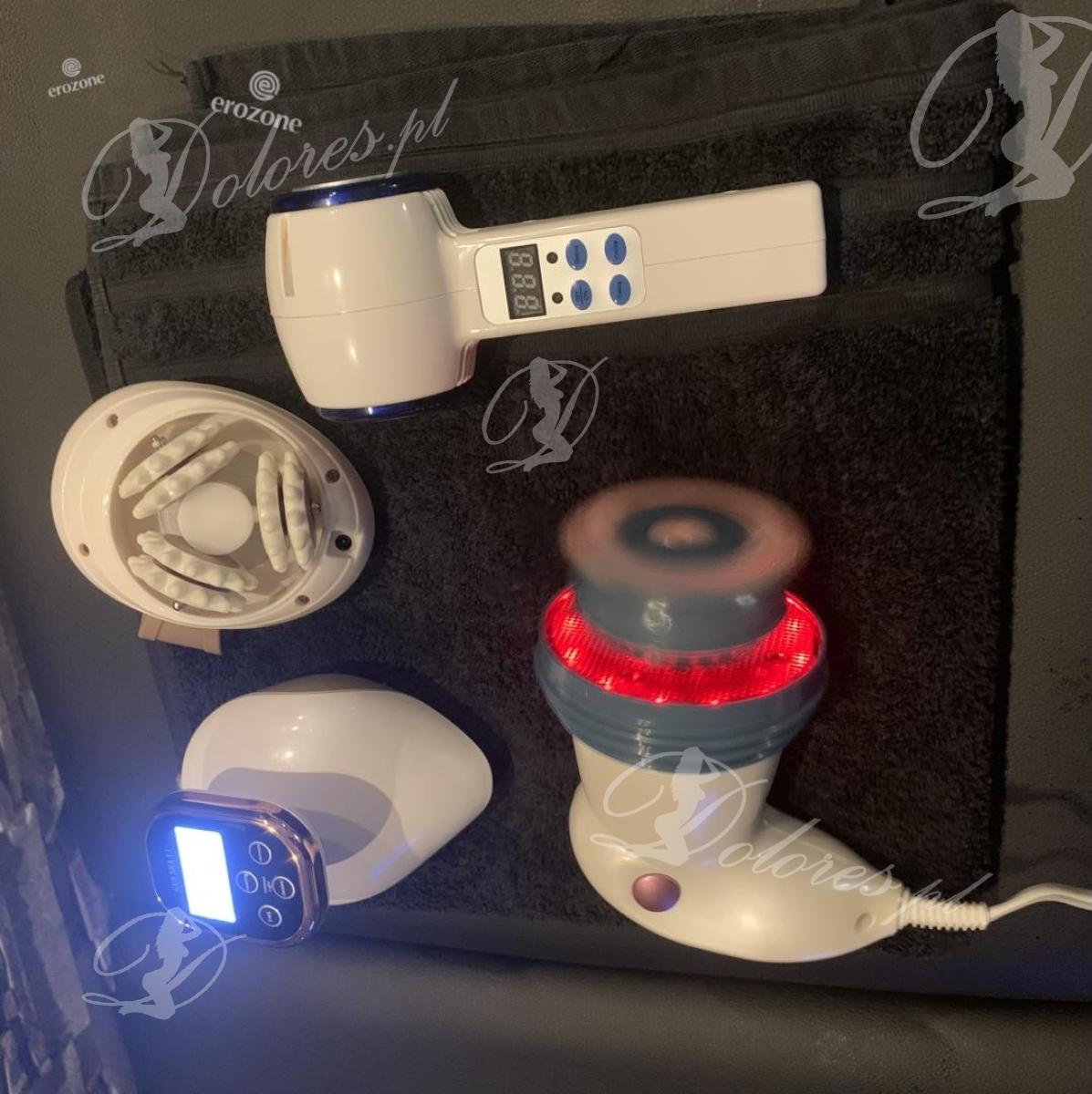 - urządzeniem , urządzenie z głowicą 3D i podczerwienią rozmasowuje dodatkowo tkankę mięśniową, plus ultradźwięki.