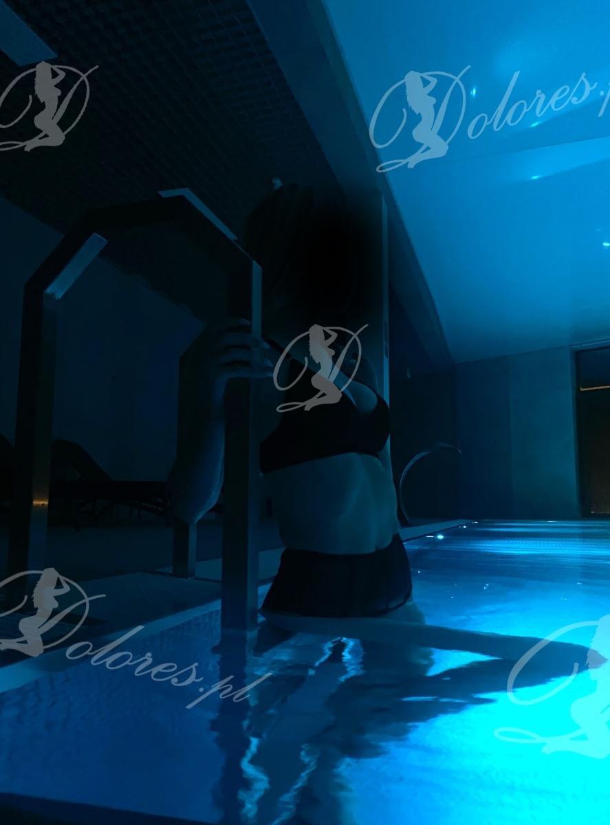 Masażystka jest w bieliźnie, brak możliwości dotyku.Spełnienie dłonią.