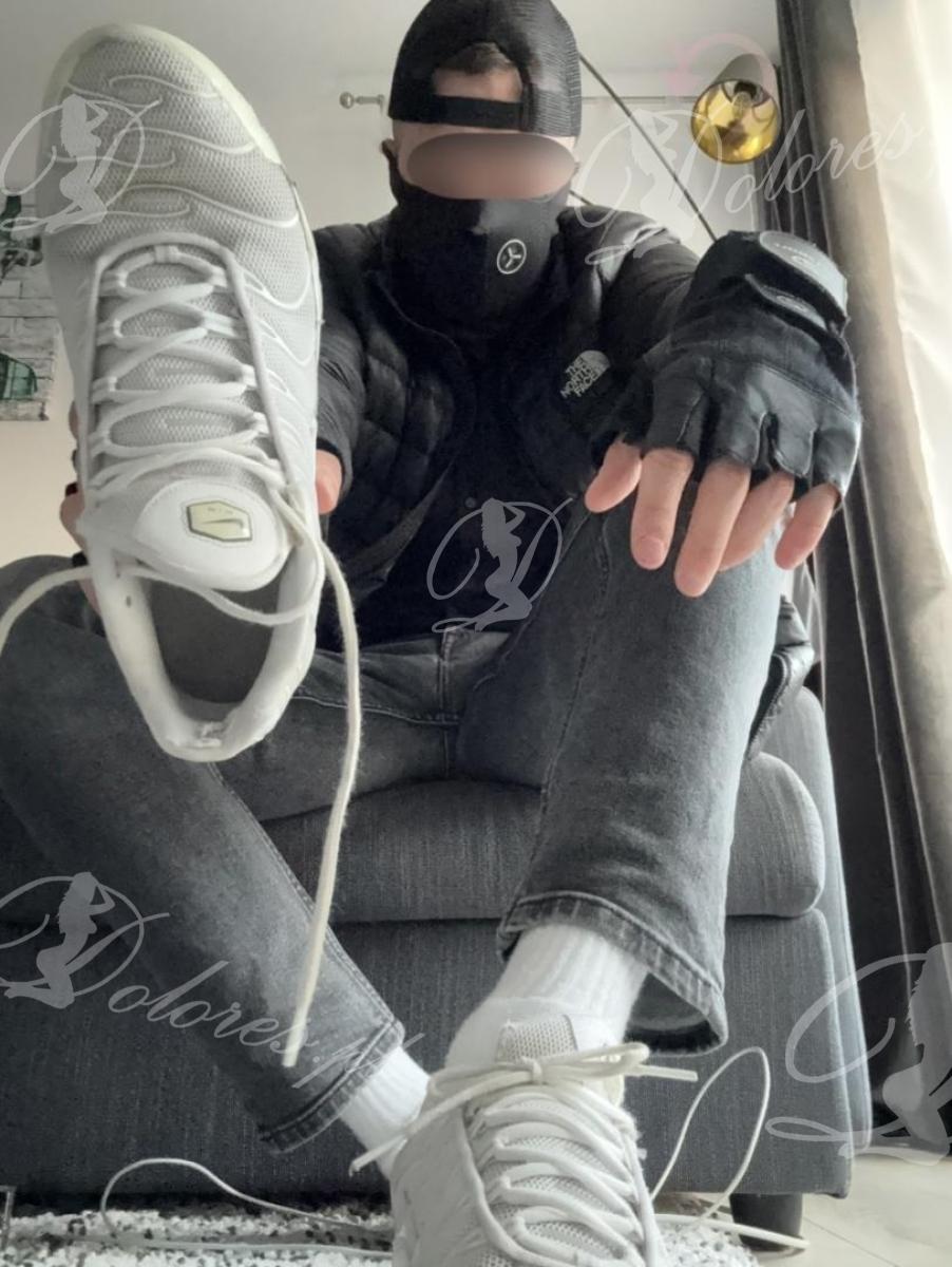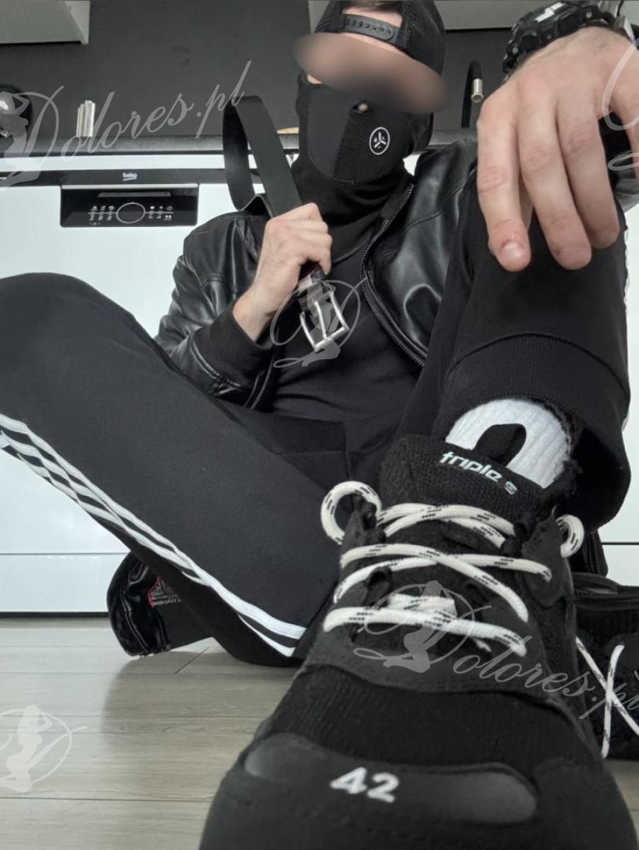 Lubię jak drżysz na mój widok i z końcem sesji zlizujesz swoje nasienie z moich stóp na kolanach dziękując za wszystko i błagając o więcej.. dławiąc się moją skarpetą w pysku.